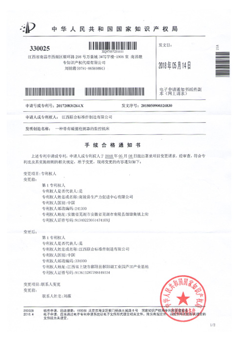 • 一種帶有碰撞檢測器的數(shù)控機(jī)床通知書